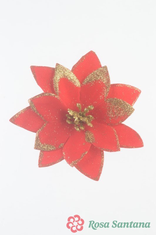Голова пуансеттии с золотым кантом для ветки, венка