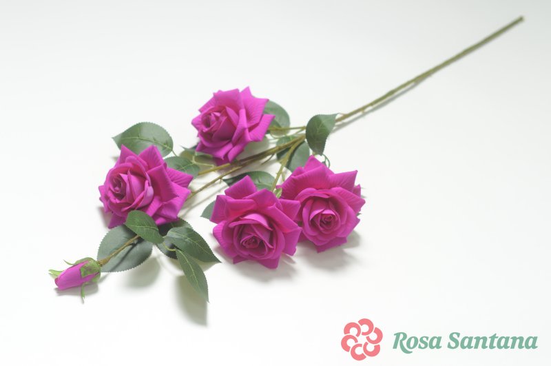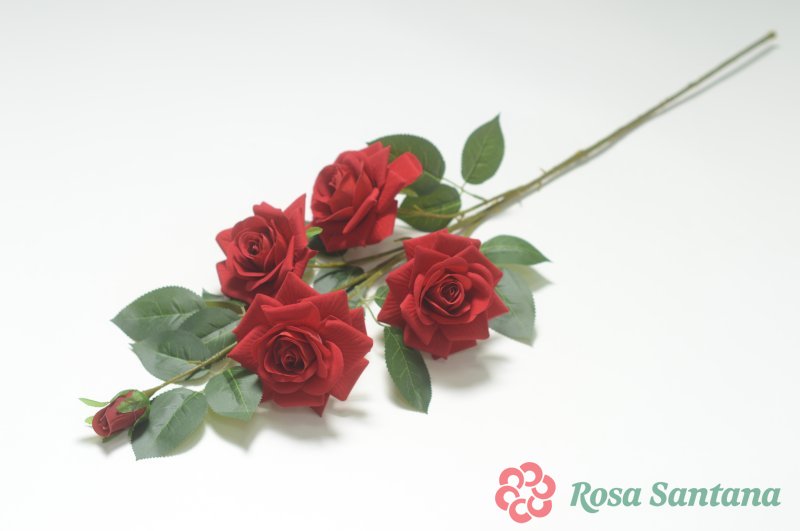 Ветка роза бархатная 4 головы + 1 бутон (1010237)