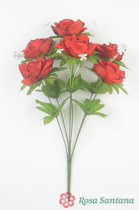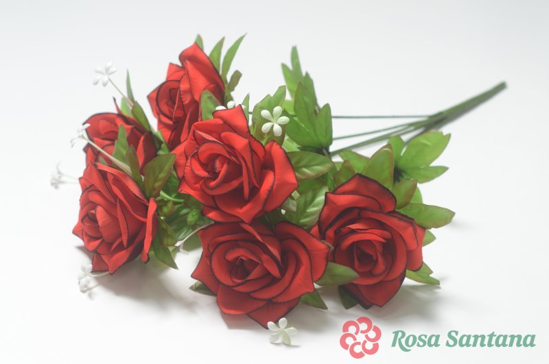 Ветка в букете роза с листом 6 голов (1010237) красный с черным кантом