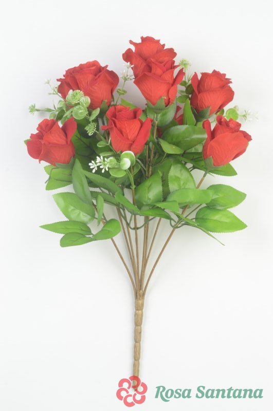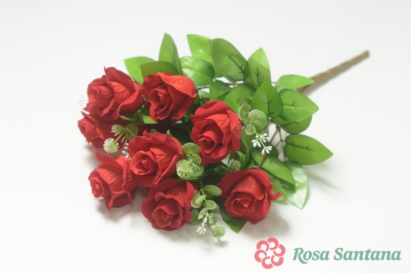 Ветка в букете роза бархатная 6 голов (1010237) красный