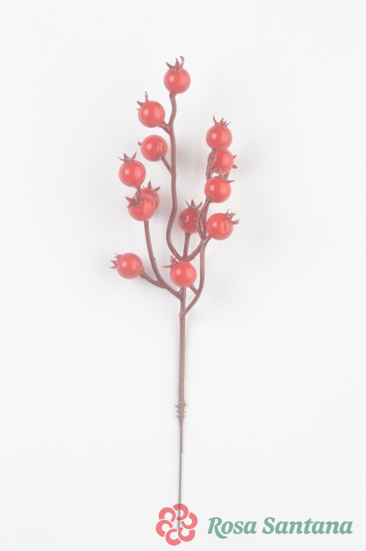 Ветка ягоды шиповник 13 ягод для декора красный