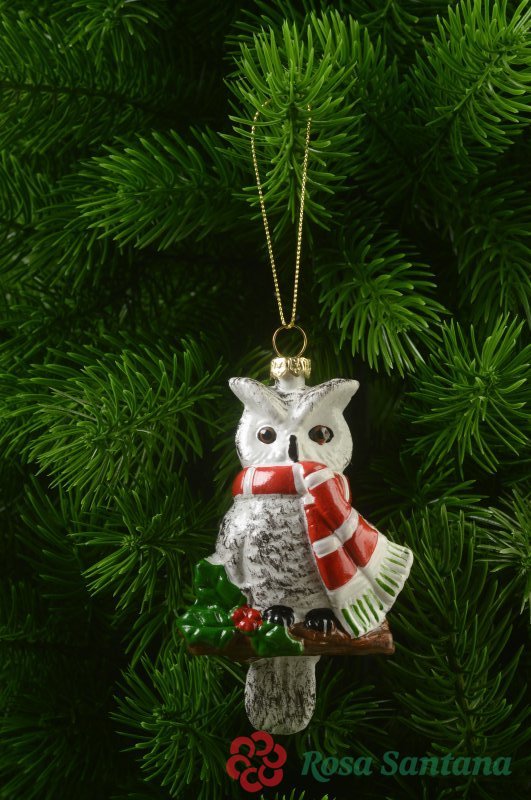 Елочное украшение Сова 12 см (уп.6 шт) белый