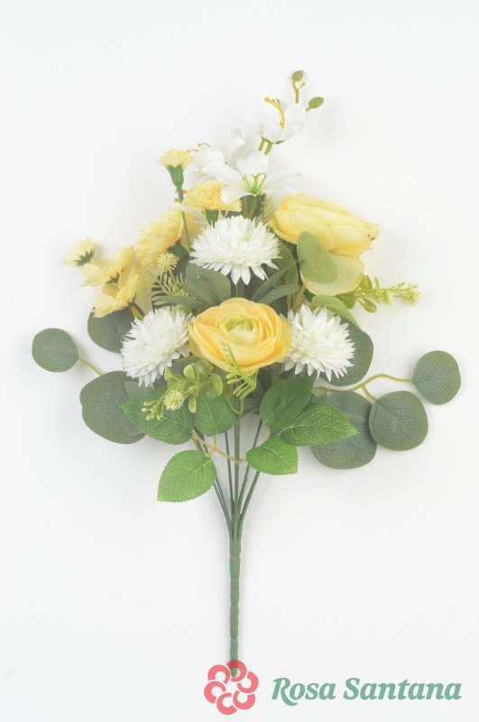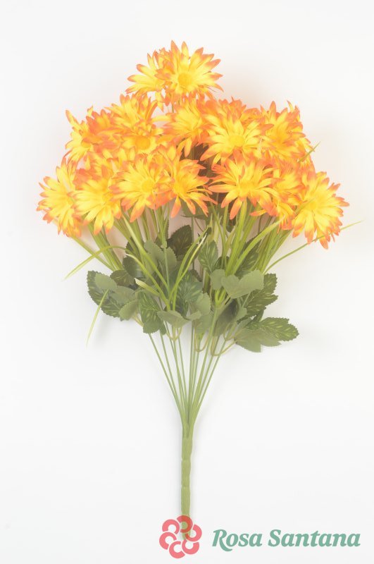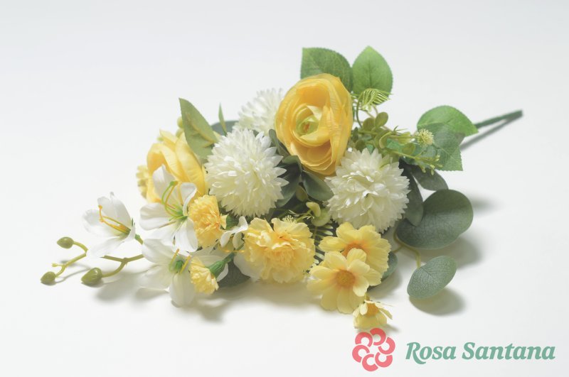 Ветка в букете бутон розы+гербера 22 ветки (1010237) лимонный комбинированный