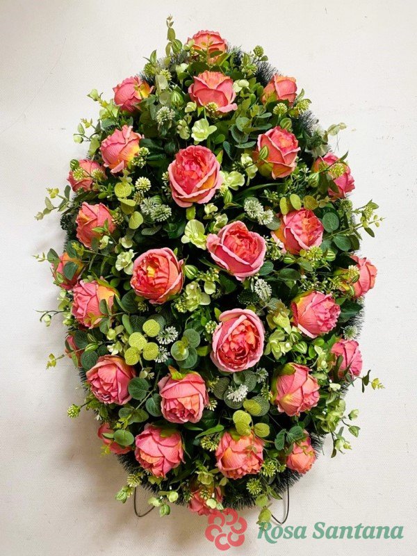 Венок ритуальный "Роза пионовидная" (h- 105см) для проведения обряда похорон (1010237) лососевый